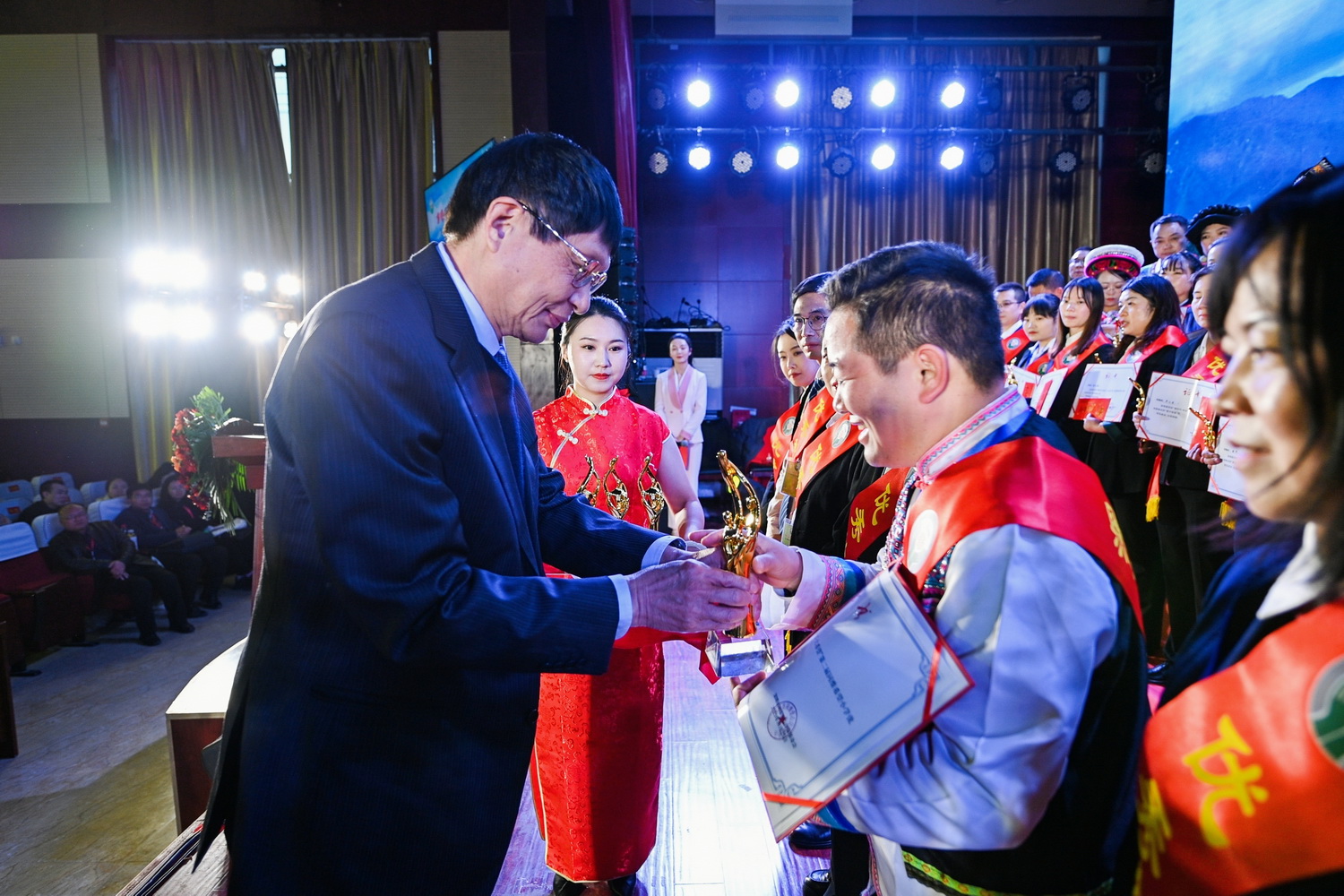 On the afternoon of November 25th, Shenzhen Tongwei Love Public Welfare Foundation held the second "New Era, Good Gardener, Great Hope" Tongwei Hope Primary School Excellent Teacher Recognition Activity in Shanyang, Shaanxi Province. Wang Shuzheng, former Secretary of the Standing Committee of the Shaanxi Provincial People's Congress, Second-level Inspector, and Deputy Director of the Guanxi Working Committee, and Guan Hanjie, Deputy Secretary of the CPC Shanyang County Committee, led the relevant leaders of the four leading bodies of Shanyang County to attend the event. Wang Dawei, Chairman of Gongjin Electronics, Long Xiaojing, Vice General Manager of Gongjin Electronics and Chairman of Tongwei Love Public Welfare Foundation, Chen Kai, General Manager of Gongjin Electronics Human Resource Administration Center and Vice Chairman of Tongwei Love Public Welfare Foundation, and staff members of the foundation attended the event. 183 teachers from 10 Tongwei Hope Primary Schools and representatives of teachers from Shanyang County, as well as representatives of students from Tongwei Hope Primary School in Manchuan Pass, Shanyang County participated in this recognition activity.