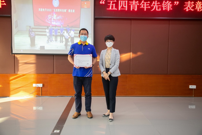 当天16:30-18:00,公司在坪山4栋2楼报告大厅举办隆重的表彰大会。太仓同维、上海共进、大连共进、西安共进、济南闻远、越南共进等分会场通过视频连线参加。此次会议共表彰40名“五四青年先锋”奖以及10名“五四青年先锋”提名奖。全体领导干部和35岁以内的员工出席会议。